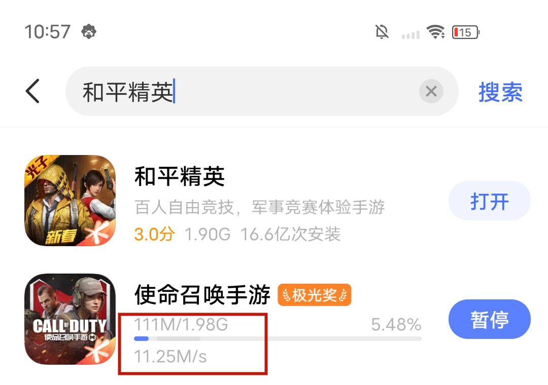 使用雅典娜这款路由器5G WiFi进行手游的下载,可以看到大型手游的下载速度可以达到11Mbps,下载速度还是很快的,只需几分钟就可以把大型手游下载完毕。