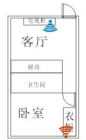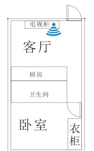 还是以上边那个户型把路由器放在衣柜里,电源插在床头柜后边的插线板里全屋就都没死角了。