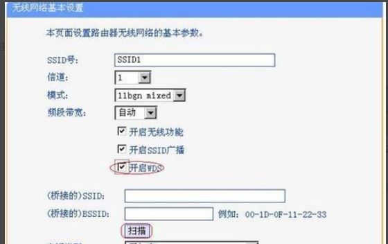 3 、勾选“开启WDS”这个选项,然后点击“扫描”选项,搜索周围无线信号,如下图所示;