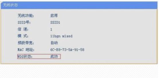 7、此时第一台无线路由器与第二台无线路由器已成功建立WDS。
