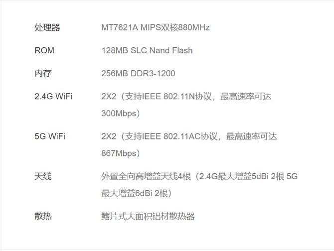 拿到产品,先说外观设计,颜值确实不错,除了包装精美的包装盒,产品本身的手感也是高科技哑光质感,和苹果的风格很接近,本体触感很细腻,光滑的哑光面,用手抚摸有种清脆的沙沙的声音,插头也是一样的材质。4根外置全向高增益天线也可以前后左右旋转,非常的酷炫。底座采用了鳍片式大面积铝材散热器,密密麻麻的散热孔可以说让我很放心它的散热性了。背后有重置孔、USB3.0接口、2个千兆局域网接口、1个千兆外网接口、电源接口,接口也按照颜色区分,避免用户插错。可以说,光材质以及设计美感就以及领先于其他型号的路由器了。