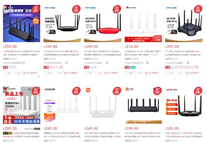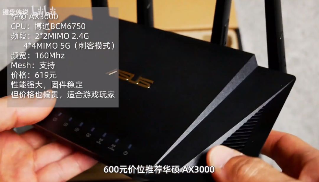 推荐华硕 AX3000,价格在 619 元左右就很香了,最低价是 551 元,华硕 WiFi6 路由器里比较便宜的型号,开启刺客模式后速率可达 5400M,5G 频段很强,华硕的固件也要比小米的好很多,玩竞技游戏多的会非常舒服。