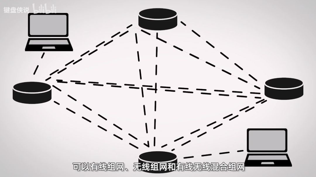 Mesh 简单来说就是由一个主路由器连接多个子路由器,在屋内形成多个同名 WiFi,在 Mesh 网络的覆盖范围内走动时,位置上哪个 WiFi 信号好,就自动切换成哪个,好处是可以实现无缝漫游,无感切换,比如在打游戏过程中切换 WiFi 也不会断网 460。