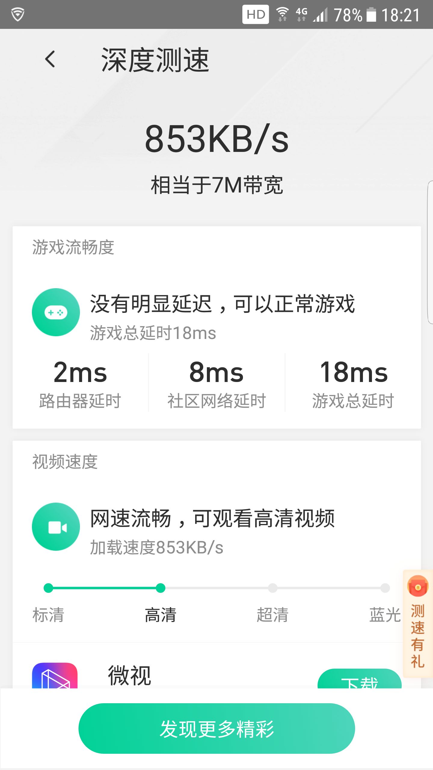 播放超清网络视频1小时,期间没有发现卡顿、断连、降低画质的情况,说明路由器在大流量数据持续吞吐情况下连接还是非常稳定的。