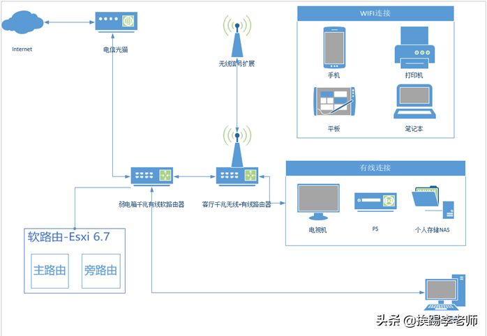 家用软路由都是旋转在弱电箱中,作为光猫后端接入的第一层设备。它的作为其实很简单,就是承担路由器的功能,其他的功能尽量减少。