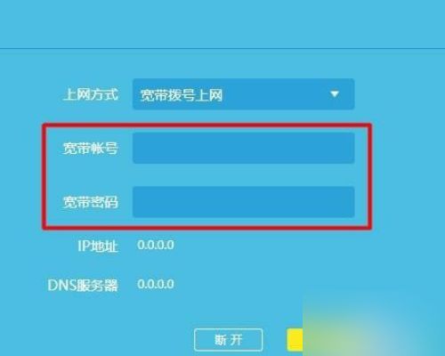 3、在“上网设置”中选择“宽带拨号上网”输入电信运营商提供的宽带账号密码。