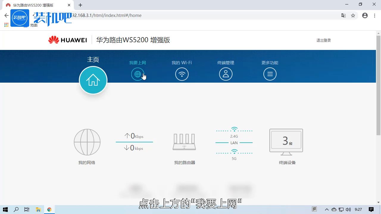 3、登录路由器后即可对路由器上可更改的功能进行设置。这里以华为路由器为例,点击“我要上网”。