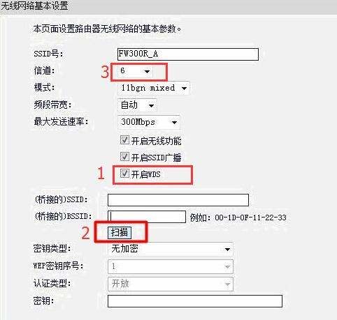 2此处要特别注意主路由器的信道,桥接的这台路由器要用一样的信道.