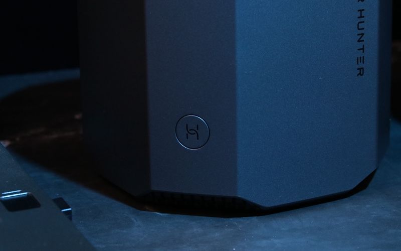 在机身顶部中间位置还印有荣耀猎人游戏路由器专属LOGO,在灯效的衬托下很有科技感。