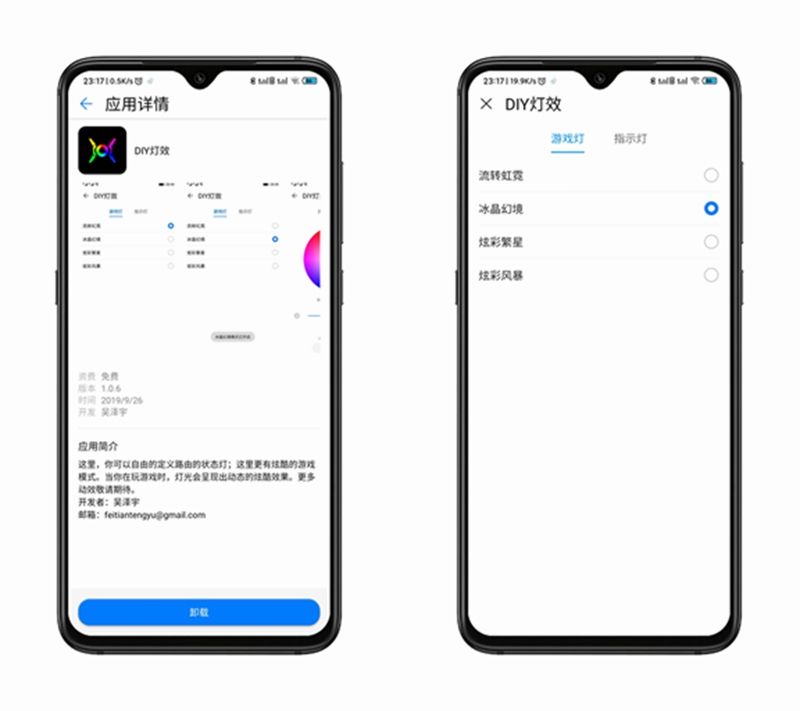 在前文小新也提及了荣耀猎人游戏路由器的RGB灯效,在智慧生活APP 插件市场下载“DIY灯效”即可进行设定,目前拥有“流转虹霓”、“冰晶幻境”、“炫彩繁星”、“炫彩风暴”四种游戏灯效模式,游戏过程灯效会不停的闪,很有游戏氛围感。