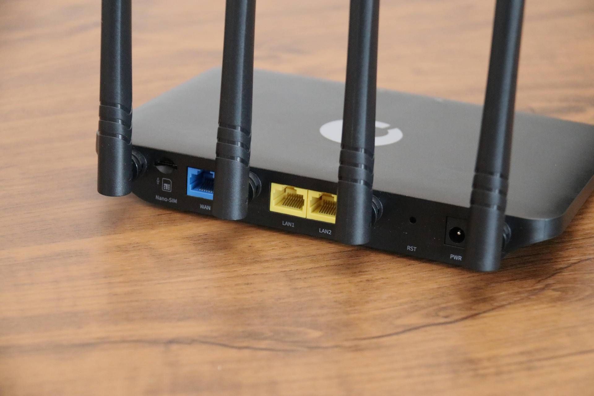 蒲公英4G路由器背部有2个LAN口和1个WLAN口,两种类型的接口分别用不同的颜色进行了标识,便于区分。