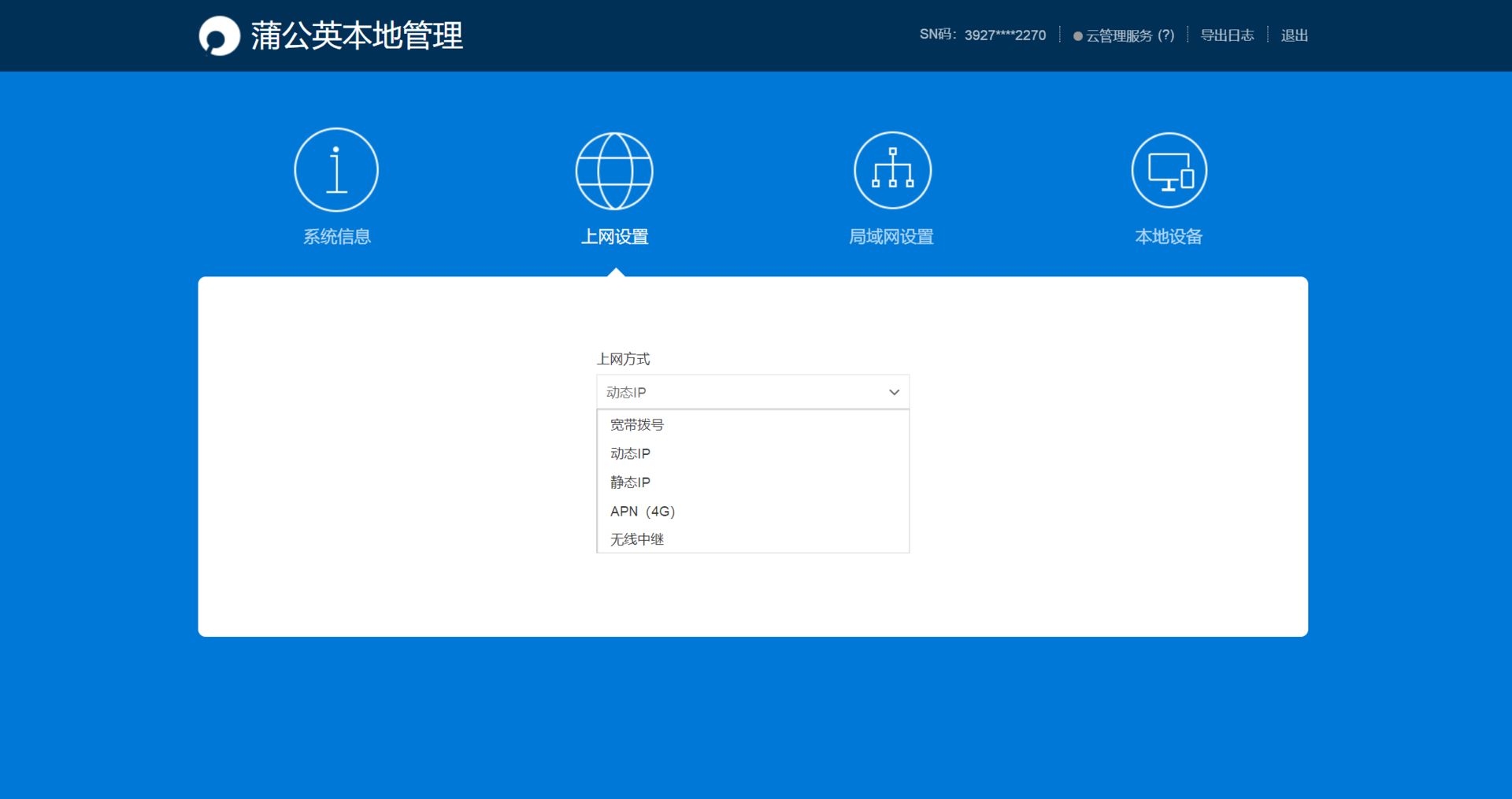 在管理页面可以看到蒲公英4G路由器的详细工作状态,整个页面的设置很简洁。无论新手还是发烧友,都能够轻松的查看路由器信息,并进行设置。