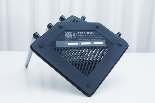 TL-WDR7660的底部呈砖石状,上面设置有4个防滑垫脚。除此以外在底部同样设计有路由器的散热网口,以保证路由器的散热性能,提升路由器的稳定性。最后,在底部的中间位置印有产品详细规格信息。