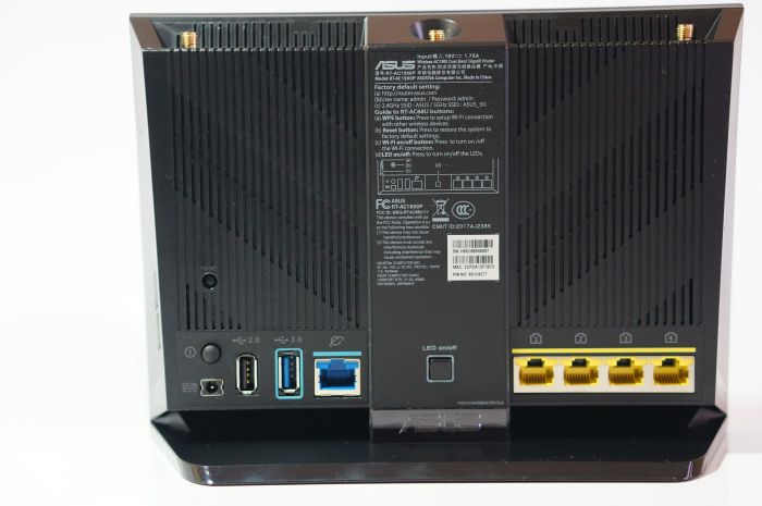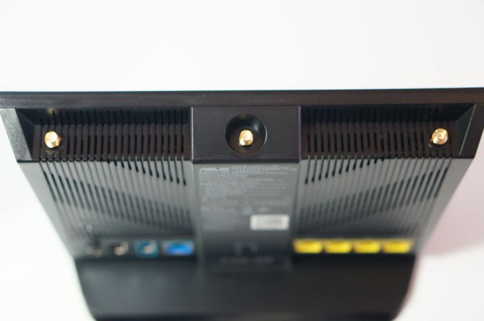 ▲底部硕大的散热孔,还有电源按键,电源接口,usb2.0接口,usb3.0接口,wan接口,led灯开关,4个千兆lan口。