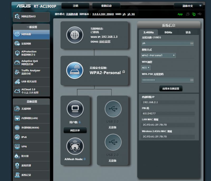 ▲华硕的经典固件界面,更新到了最新固件后可以看到AiMesh Node显示,这表面1900p支持aimesh功能