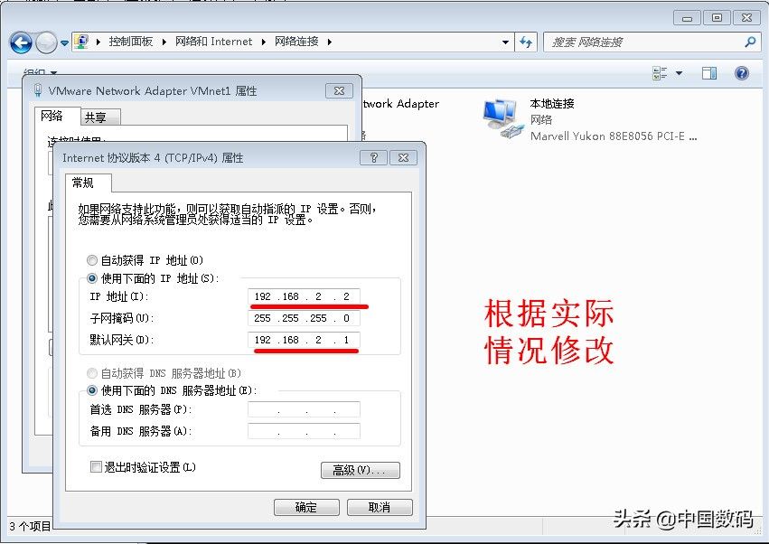 我电脑网卡IP是192.168.1网段,我虚拟机路由系统设置LAN口网段192.168.2,打开电脑网络适配器管理页面,手动设置VMnet1虚拟网卡IP地址为192.168.2.2。