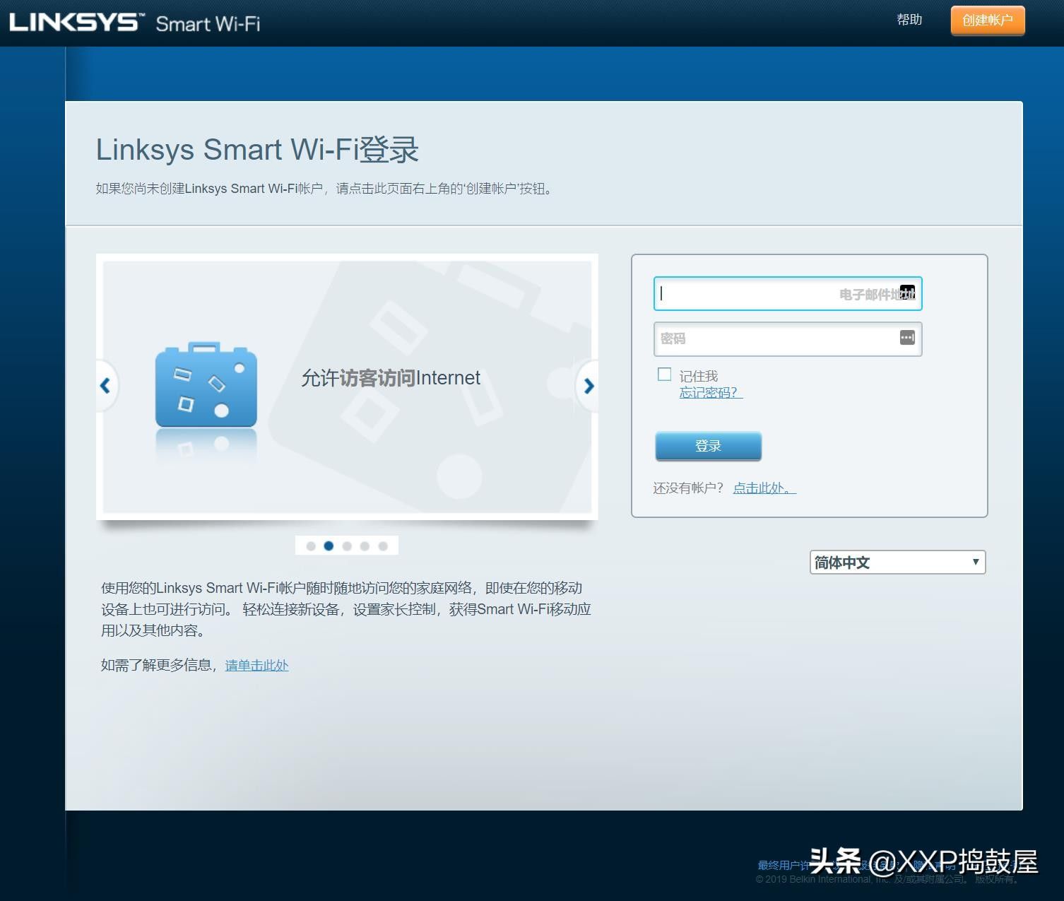 现在的路由器设置项已经是越来越简单了,都有引导步骤提示,设置部分我就不介绍了。在浏览器输入https://LinksysSmartwifi.com,就可以跳转到路由器设置界面,通过引导设置选项后登录路由界面,如果是新用户的话,可以注册Linksys Smart WIFI账户,便于远程访问和管理领势EA7500。