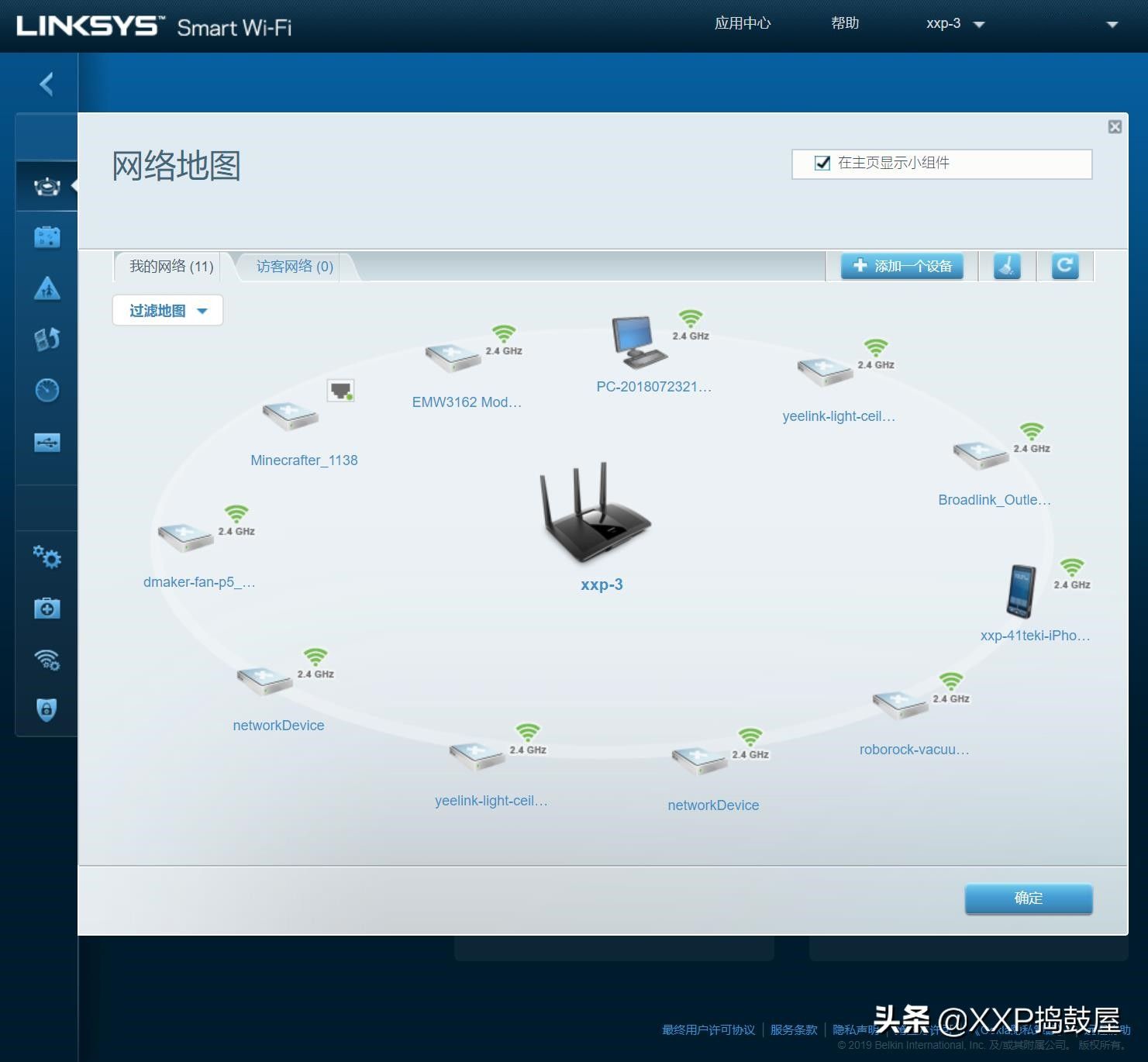 在网络地图中可以直观看到当前联网的设备,每个设备的连接状态都会细分化,例如是有线还是无线连接,无线连接又分为2.4GHz还是5GHz。