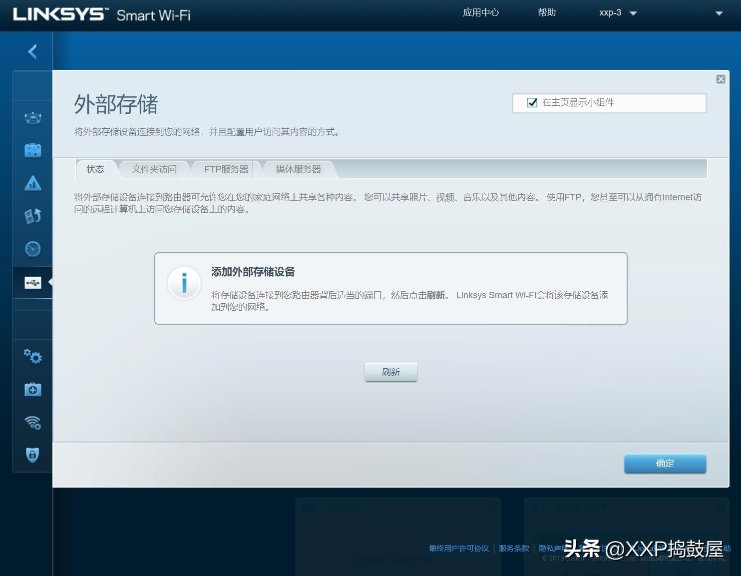 外部存储,可以通过挂载移动硬盘来实践组建简易的NAS外部存储功能,特别是访问模式可以设置家庭局域网访问外,还可以设置外网FTP模式、DLNA访问。