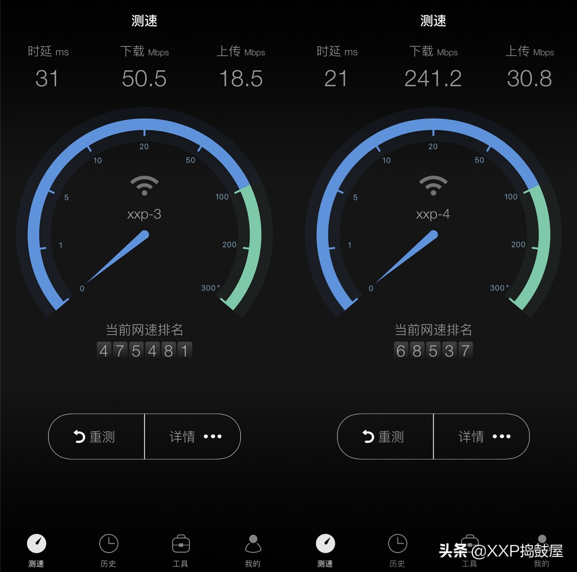 虽然领势EA7500标称AC1900+,其实它却是正统的双频AC2600规格。采用联发科MT7621+MT7615的主芯片、无线解决方案,双核处理器主频880MHz,配备3+1天线设计(3外1内),支持完整4X4 MU-MIMO。其中2.4G频段最高可达800Mbps,5GHz频段最高可达1733Mbps,同时5GHz无线部分还使用了独立的功率放大器。上图就是测试环境约130平方米的套房,共有3个测试点,分别对2.4GHz和5GHz两个频段进行测试,测试设备手机与笔记本电脑。