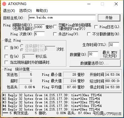 ▲使用ATTKPING测试丢包率测试,2.4GHz下丢包率测试