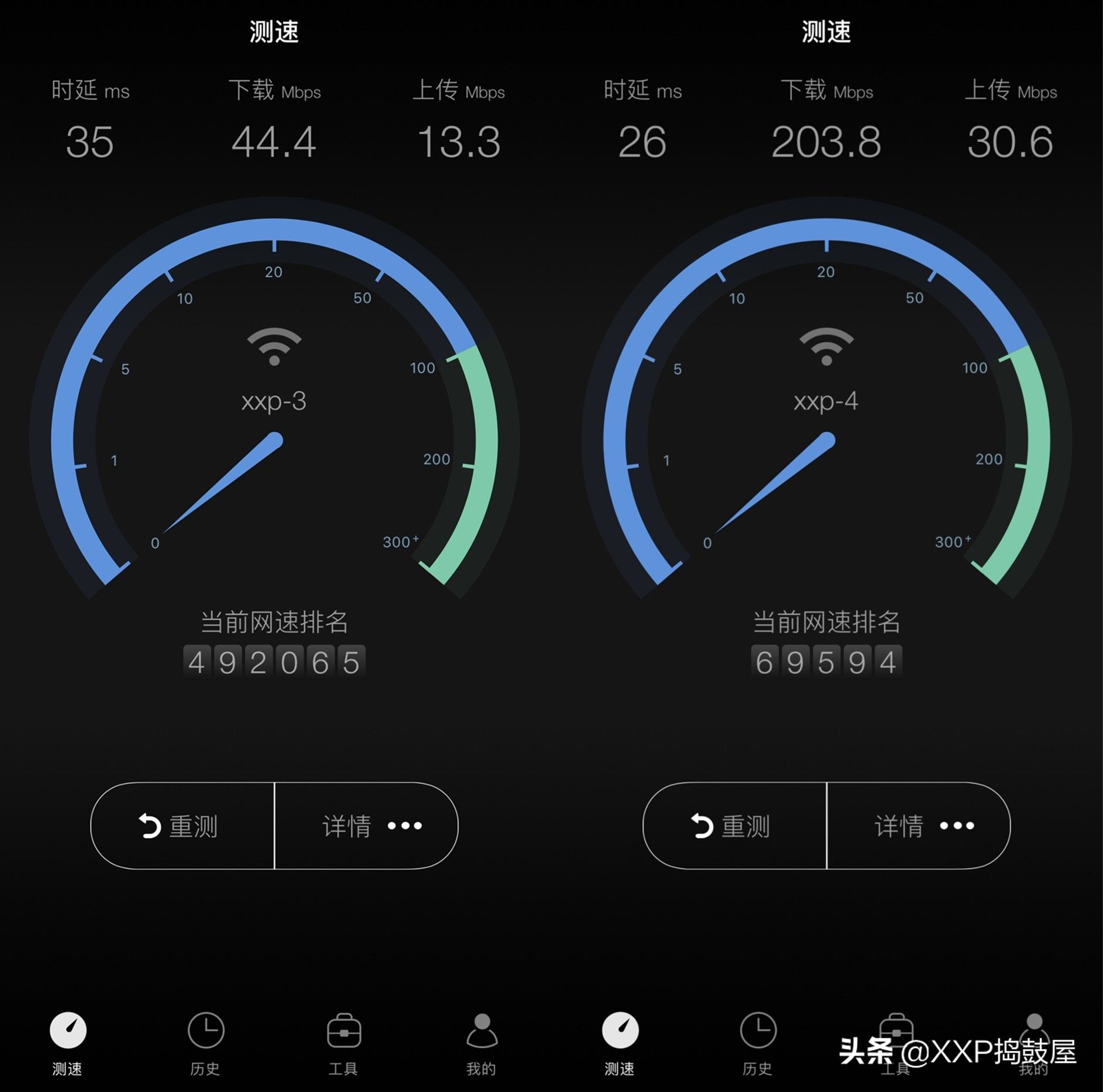 ▲2.4GHz和5GHz两个频段的下载速度分别为:44.4MB/s和203.8MB/s