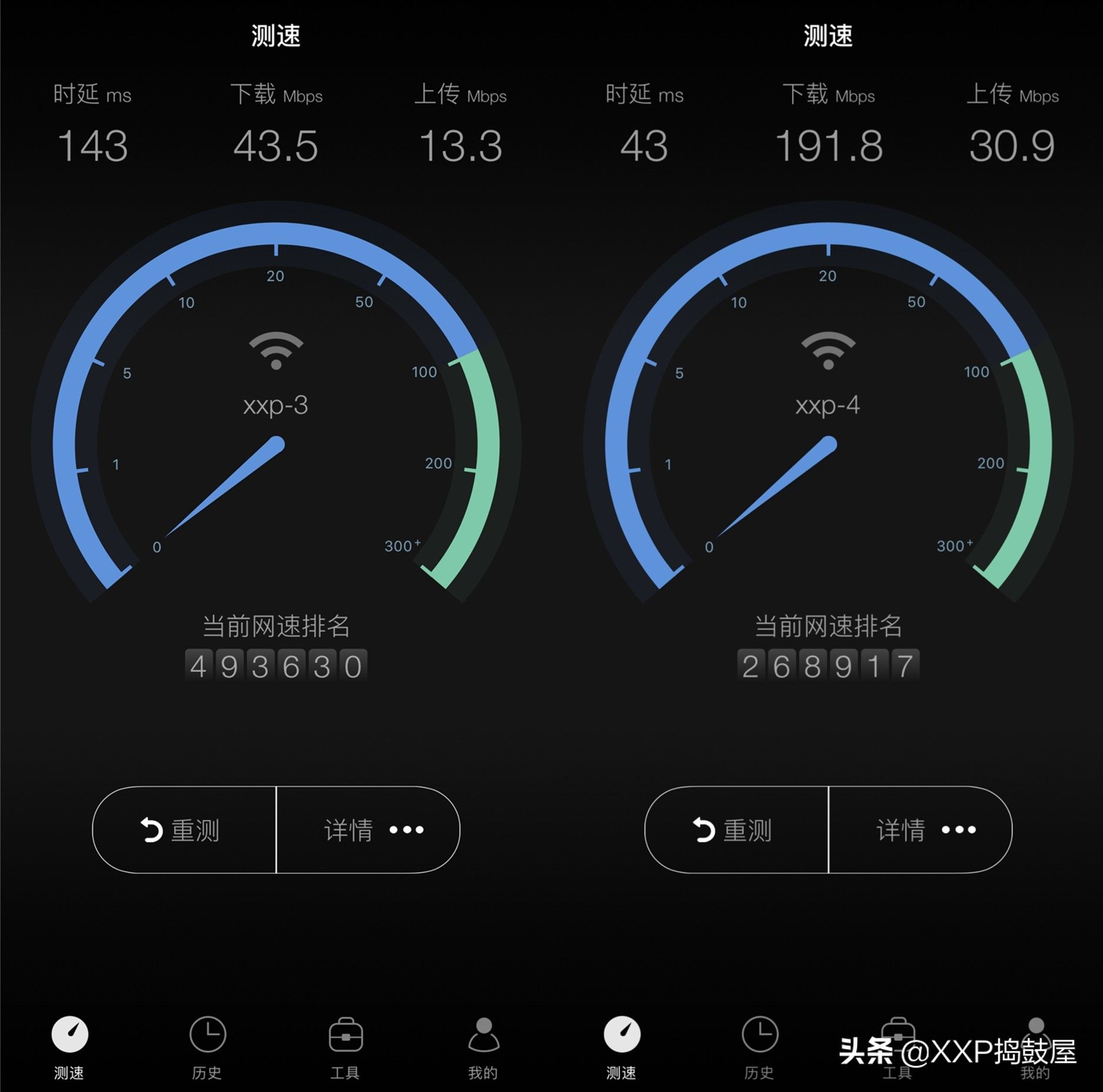 ▲2.4GHz和5GHz两个频段的下载速度分别为:43.5MB/s和191.8MB/s