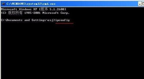 2、进入命令提示符窗口,输入ipconfig,按回车键执行;