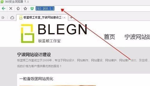 4、打开浏览器,在地址栏中输入路由器地址192.168.1.1,回车;