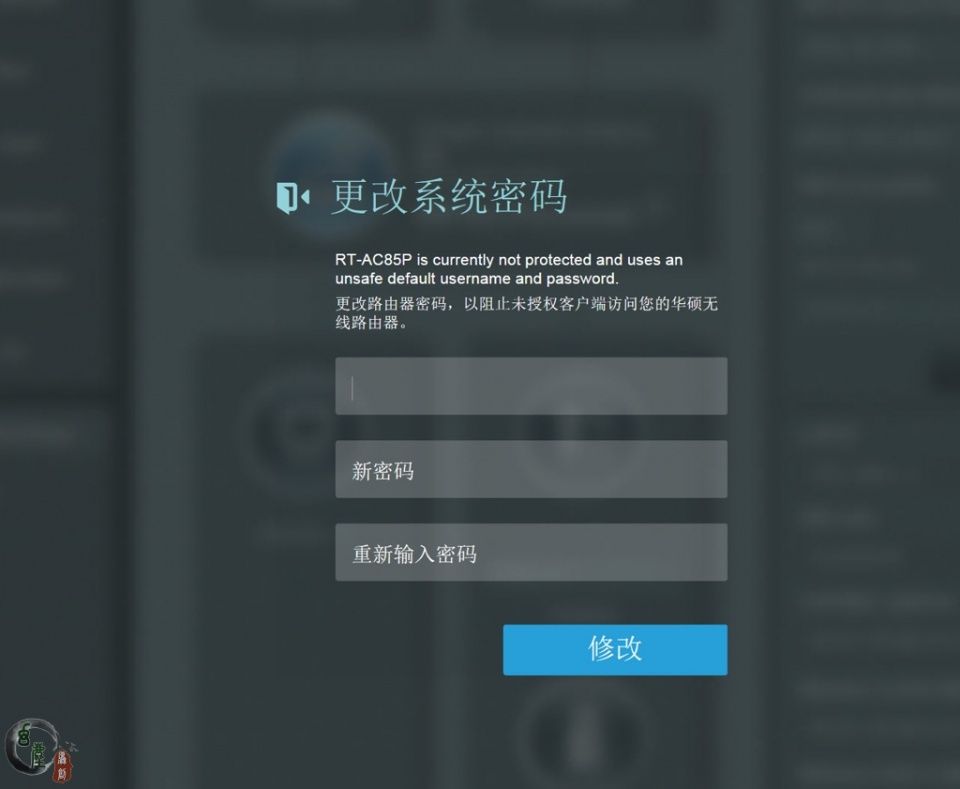 第一次使用,必须得更换默认密码。否则之后懒得更换了,华硕这样设计,也是为了提升安全性。