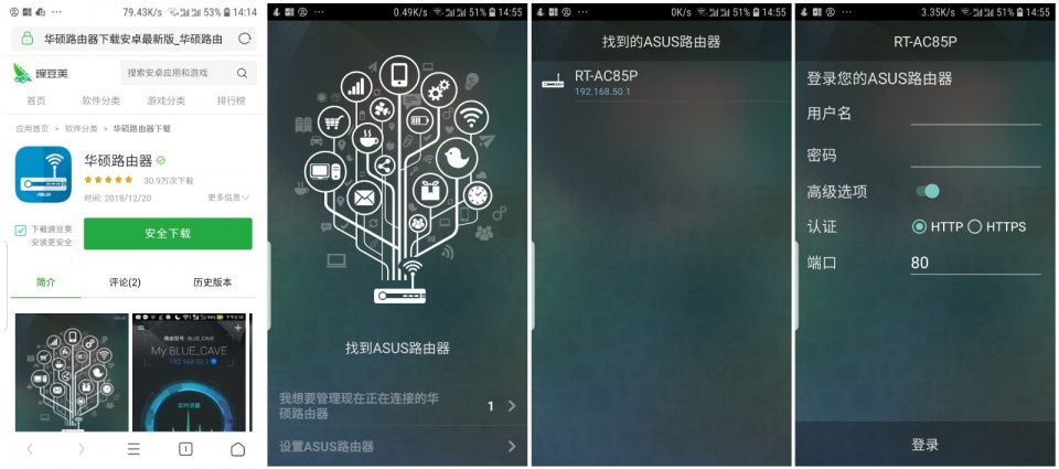 现在路由器,只要是好一些的,都会配套专用的手机APP。至于原因,我觉得还是由于PC使用人数越来越少,很多人购买路由器只是单纯给手机用的,而不是给电脑用的。所以如果没有专用的手机APP,那如何对路由器进行详细的设置呢?我是这样理解的,但实际上,是不是这样,就不清楚了。反正只要有手机APP,你使用路由器,完全可以抛弃PC了。这款手机APP的名字,就叫华硕路由器,简单,好记,直观。第一次使用时,会自动查找路由器,找到后输入密码,用户名,就可以登录了。
