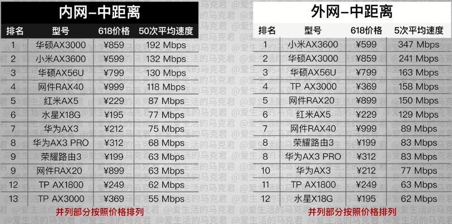 微博数码博主“爱生活的马克君”专门购买了京东商城官方价格千元以内的12款家用路由器,进行了实测。