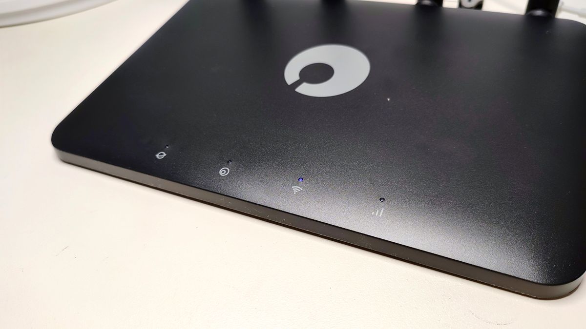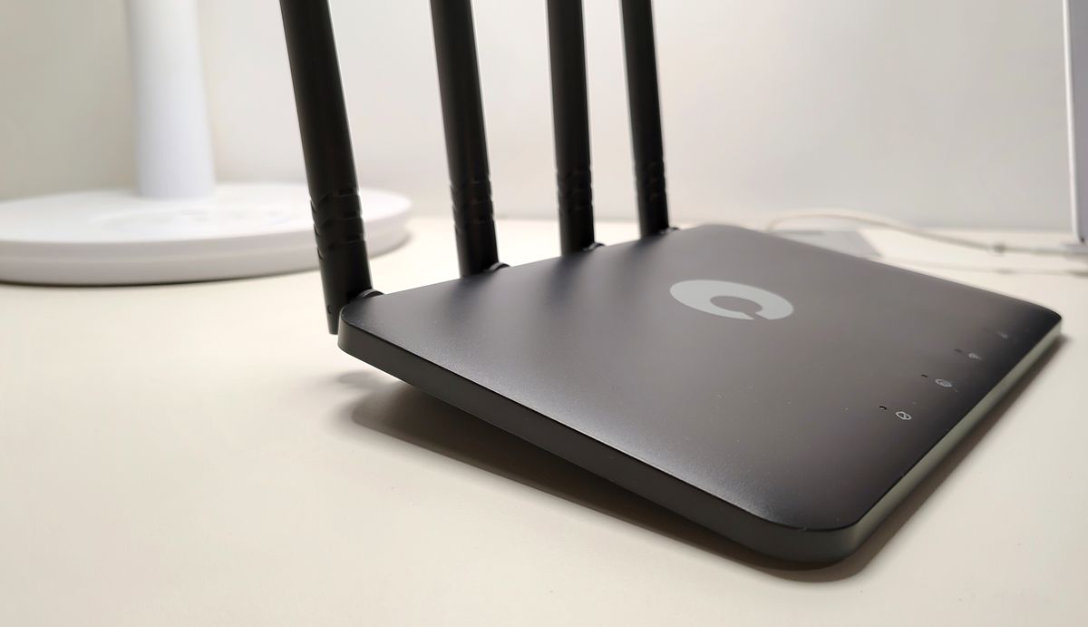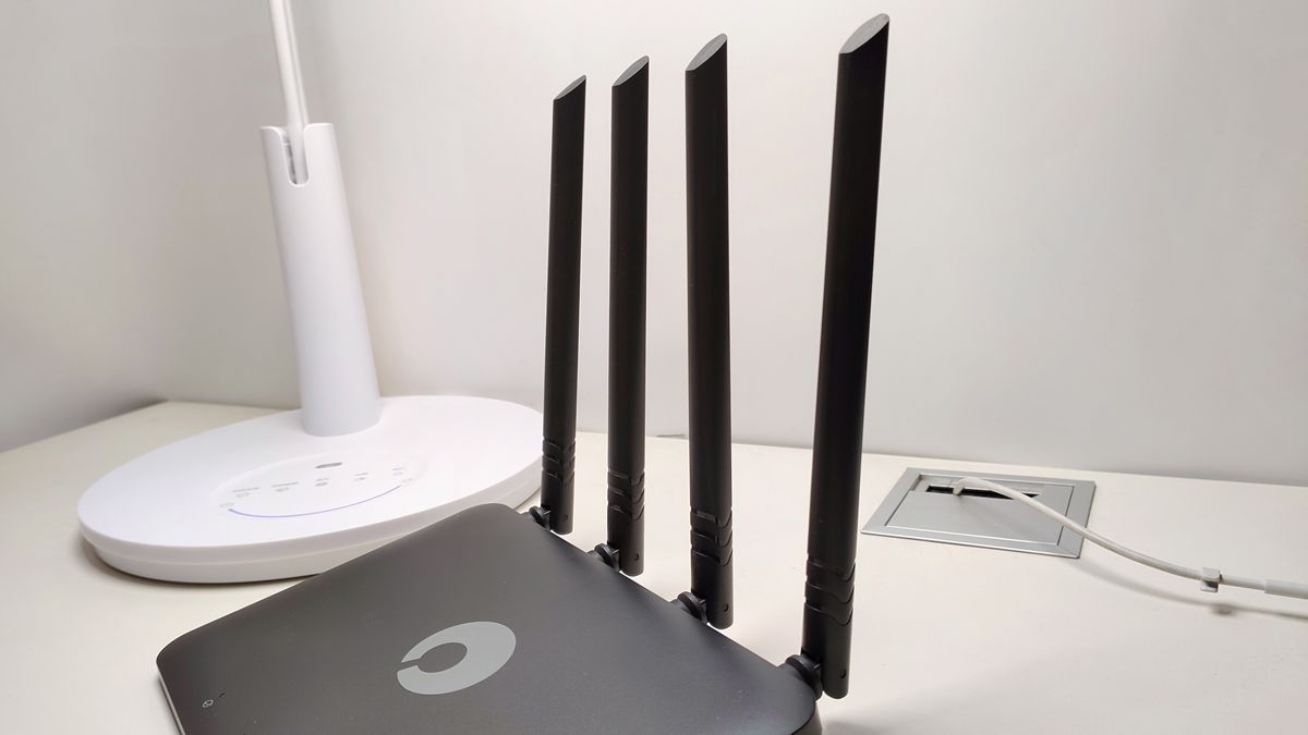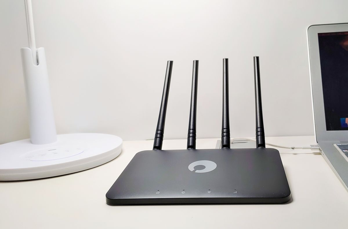 在外观方面,相比较市场上的同级产品,蒲公英X4C路由器看上去更有设计感,而且路由器前方还做了一个微弧形的设计,表面采用了磨砂材质,看上去非常有质感。路由器的正面为四个指示灯,分别显示网络状态、组网状态、WiFi状态以及4G网络状态,正中间则为蒲公英的品牌logo。