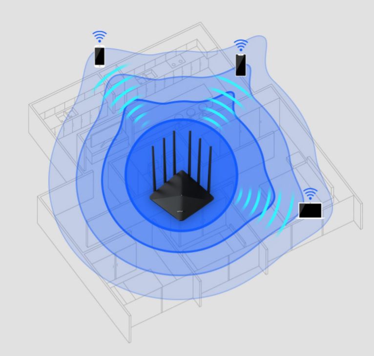 对于信号死角的问题,由于现在很多主流手机都支持 LDPC,而它就它能够运用高效的 LDPC 纠错算法,增强抗干扰能力,提高信号接收的灵敏度,智能改善弱信号,就算在房间角落也能够感受快速 WiFi 网络。