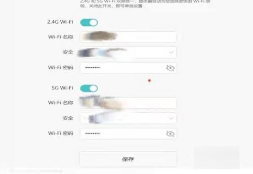 4、设置5G网络:设置5G的无线网络,输入名称和密码,进行保存,两个网络设置完成,根据需要链接即可。