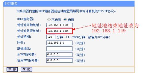 5、点击【DHCP服务器】---【DHC服务器设置】,把【地址池起始地址】设置为192.168.1.100;把【地址池结束地址】设置为192.168.1.149 点击保存,重启主路由器。