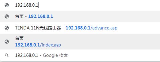 1、首先再搜索栏输入192.168.0.1或192.168.1.1,具体需要看自己路由器背后的信息。