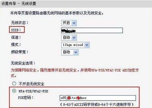 当然还要在下面的无线安全选项中选择WPA-PSK/WPA2-PSK安全模式,并设置密码。