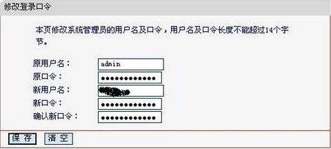 第三步:在右侧的界面中分别输入老的用户名、密码以及新设置的登陆用户名和密码,然后点击保存即可。
