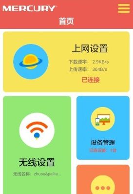 3.在app首页,可以看到有上网设置,无线设置,设备管理和其他设置四项,点击上网设置