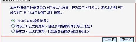 第三步: 在接下来的界面中,选择你的上网方式,通常大家的上网方式都是pppoe虚拟拨号方式,这也是路由器中缺省的方式,然后点击下一步。