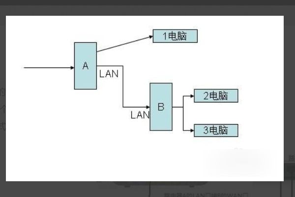接着A路由的LAN 口连接上B路由的LAN口,B路由就相当于A路由的扩展端口,起到了交换机的作用,电脑连接到B路由的LAN口就OK了,若需要设置各电脑的TCP/IP 属性,就按照A路由的规则设置即可,其实就是连接在A路由IP段下。