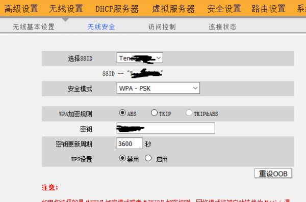 选择加密规则为AES,填上无线网密码密匙,点击确定按钮。