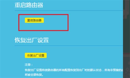 3、点击“重启和恢复出厂设置”之后进入新的界面,在重启和恢复出厂设置的右侧,点击重启路由器。