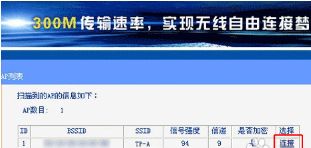 接着会列出扫描到的无线SSID,在扫描到的无线SSID列表中单击主路由器TP-A后面的【连接】按钮,如图。