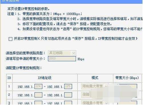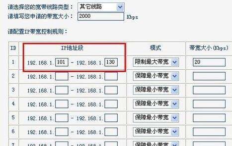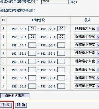 首先自然是填写IP地址段了,这就要用到了刚才所记录的IP地址了,如果是为所有的IP地址分配相同的带宽,只需把设置一个公共的IP地址段包含这些IP即可。
