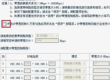 4、需要勾选“开启IP带宽控制”,然后选择带宽线路和申请的带宽大小,填写的时候需要根据实际情况填写