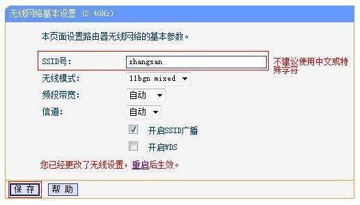 修改 SSID号 即无线网络名称。