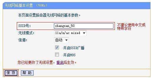 (1)设置5GHz频段的无线网络名称