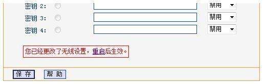 页面下方提示“您已经更改了无线设置,重启后生效”,点击“重启”。
